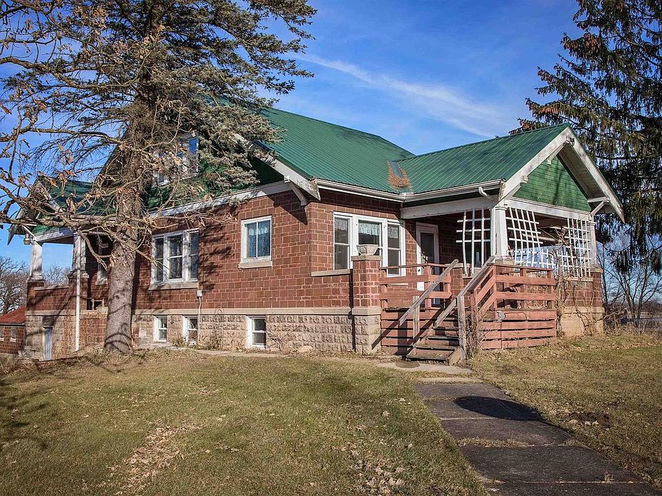 Character and light filled situated on over 4 acres! Wow... This charmer is just waiting for you! Brick exterior, newer metal roof, some newer windows, original hard wood floors, beautiful built-in's, main floor laundry, 3 outdoor porch areas for entertaining. Carriage House (or detached 2 car), original barn, and fenced area. Oil boiler, LP is also available on the property. Interior paint and polishing those hardwoods will bring this one to life! Government loans may not qualify as exterior trim has some peeling paint.