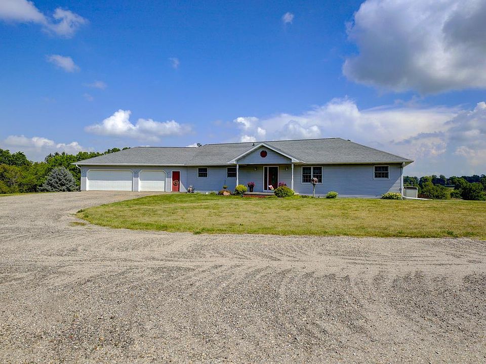 Experience breathtaking views from this stunning home nestled on three acres, conveniently located near Windy Acres Golf Course. Main level boasts an open-concept layout with a vaulted ceiling and a custom kitchen featuring a large island w/ breakfast bar seating. Primary includes a spacious walk-in closet, en-suite, and a linen closet. Additionally, there's an office/den, a second bedroom, a full bath, and a main floor laundry room equipped with a sink and two closets. The lower level offers a bright family room with a walk-out patio, a gas stove fireplace, a full bath, two more bedrooms, and a storage area. The oversized three-car garage provides ample room for a workshop. Other highlights include wired sound in the kitchen, primary bedroom, and deck, as well as a central vacuum system.