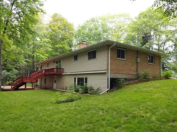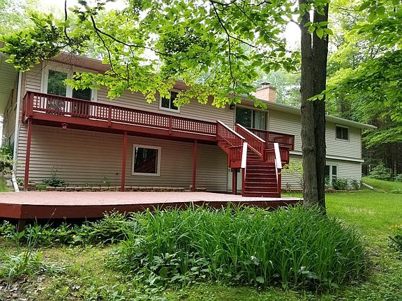 Brick 3 bedroom home, 1 1/2 bath on wooded 7 acres of land. Large family and living room. 2 car garage. Black top private driveway. Full basement. Large deck in back of house. Appliances included which include water softer and propane tank. Energy efficient furnace and hot water tank.