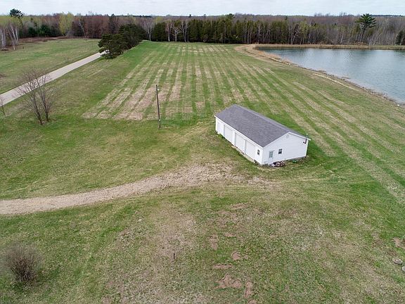 Remarkable, pristine lake and 104 acres of gorgeous land for hunting, fishing, enjoying the serenity of nature. The lake is fully stocked with fish, including trout who are thriving. With areas of forest, open space, wetlands, creek frontage, the land supports abundant wildlife and has a perfect elevated spot for your dream home or cabin overlooking the lake with southerly exposure. There is a three car garage at the entrance to the property for toys and gear. Across the road from the 15,000 acre Navarino Wildlife Area, which offers hunting, fishing, skiing, snowmobiling and hiking with the Wolf and Shioc rivers running through it. Quite literally the opportunity of a lifetime for the outdoors enthusiast or nature loving families to escape the busy-ness of life and find your paradise.