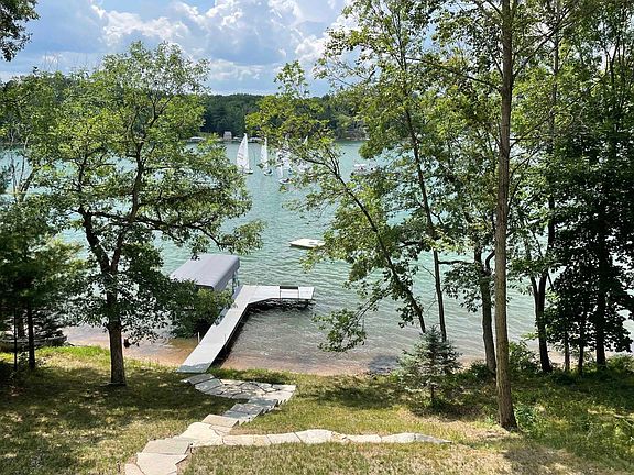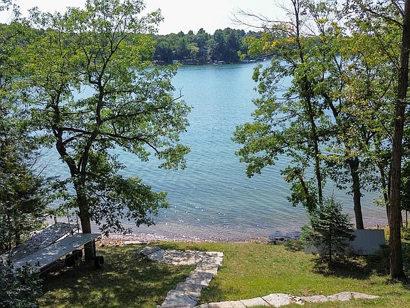 Rare find in this market! LONG LAKE BEAUTY with 125ft of sandy frontage!!!! This 3bed/2full bath home sits on a beautifully landscaped .72acre gently sloping tree-lined lot on the NORTH SHORE. Enjoy gorgeous lake views, sunrise to sunset from your deck or patio. 2car detached garage, cathedral ceilings, central air, and walkout basement w/egress & plumbed for 3rd bath. COMES TURNKEY including all appliances, most furnishings, pier, boat lift and swim raft.....all ready for you to start enjoying the LAKELIFE immediately!
