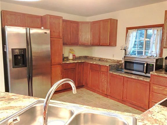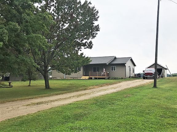 Take the long driveway back to this completely remodeled 2 bedroom ranch style home nicely situated in the country on just over a half an acre. Spacious open concept kitchen with dining area and appliances included. Lots of cabinets and counter space. Huge bathroom with tiled walk in shower, jetted tub, and conveniently located first floor laundry w/washer and dryer included. Covered front porch and back deck with beautiful landscaping. One stall detached garage.