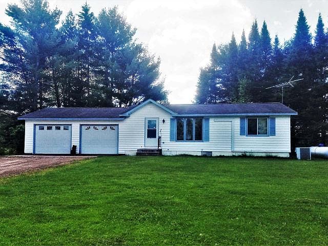 (#435J) Flambeau River, 2 bedroom, 2 bath home on a 1 acre lot. The ranch style house sits back from the road on a long, wide front yard with the rear of the home overlooking approximately 100 feet of river frontage. There is a gradual slope on one side of the lot for easy river access. The home features a full, almost entirely finished basement that consists of a family room, 3/4 bath, another finished room and an unfinished room. The kitchen, living room, dining area, 2 bedrooms and a full bath reside on the main floor. There is a newer septic system and all of the flooring in the home has been replaced. A 2 car attached garage, a shed and an additional 17'x20' detached garage round out the property.