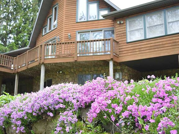 Enjoy the peace and tranquility! Log sided home with walkout finished basement on a quiet dead end road. Approximately 100 ft frontage on the Pine River. Just steps away from the Covered Bridge Park. A 1.05 acre lot adjacent to property included for future building. Open concept with Brazilian Cherry kitchen flooring, loft area, custom closet shelving, main level laundry closet. Walk out your back door to catch Brook, Rainbow and Brown Trout from a class A trout stream. Oaks, pines, garden shed/playhouse and perennials. Agent owned.