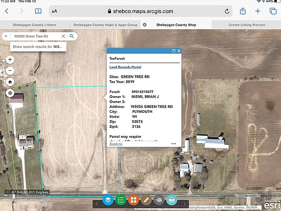 5.3 acres zoned A-2 town of Plymouth, (home and farm animals allowed) certified survey and soil test are done and registered with Sheboygan County. New 200ft driveway is in to building site. Hill allowes for an exposed basement. Nice sandy well draining hill. Artisan wells are common also in this area. Pros.....low town of Plymouth land taxes, Plymouth Utilities electric lower than most, many different rural high speed internet offered in this area, small township road with very little use. 800 feet away from Gerber Lake wilderness area with 150 acres of public land with two lakes. Everything is done just bring in your home plans and obtain a building permit. No soil tests needed, no driveway permit needed, no zoning changes needed. No mega farmers in this area with overwhelming manure smells, never smelt it in the 20 years living here. Make a verbal offer worst I can say is no or a counter offer. Once we agree on it then we can get it in writing and go from there.