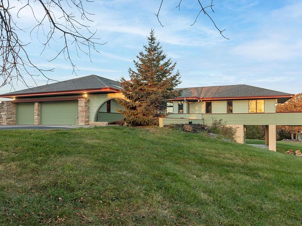 Beautiful sprawling Frank Lloyd Wright inspired one of a kind architectural design w/cedar siding.. Nestled back andsurrounded by nearly 35 acres of the Best views around! Home is Open concept, with banks of windows for breathtaking views! The special architectural features of this 5 bed, 3.5 bath home are something to see. Master Suite and laundry on Main floor, Huge kitchen/family area w/ stone fireplace. Mother in-law suite, 3 bedrooms, laundry and huge Gathering room w/a Marble floor to ceiling gas fireplace & dbl patio doors on lower level, take you out to your huge yard with playhouse and firepit, and your very own forest. Home & Horse barn sit on 10 acres that have an invisible fence, for your pet's safety. This sale makes up 2 parcels to equal 34.95 acres. lots of extra amenity