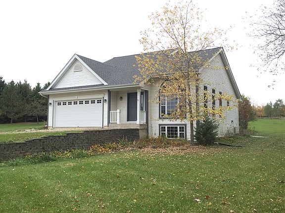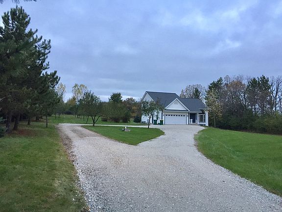 Ultimate privacy! Great location on 5 acres. Pole barn with A2 zoning. 2 x 6 walls. 3 bedroom, 3 ½ bath with open concept with vaulted ceilings with extra tall windows makes this home full of light. Kitchen has a breakfast bar, pantry, stainless-steel appliances & sliding glass doors to your tree-lined private acreage. Main floor Master En-Suite. 2nd level features hardwood stairs, loft area that would make a great kid's area or home office, 2 bedrooms, full bath with double sinks. Main floor laundry and 1/2 bath. Fully finished lower level features 10' ceilings, above grade windows, bar area with room to add a pool table, full bathroom, around the corner could be a theater room, game room, or family room. All interior doors are hardwood. Central Vac system. Very private quiet location.