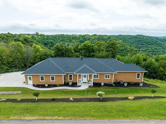 Discover luxury 15 min from downtown. Located near Mayo & Gundersen Hospitals. Home built in 2022, on 1.22 acres. 4 bed, 3 bath walk-out ranch is perfect for entertaining. The heart of this home lies in the open kitchen & dining room/living room with a gas fireplace. A gourmet kitchen with large island & high-end amenities like a Thor 48" dual oven, granite counters, and wine fridge. 24'X16' deck off living/dining room with an amazing view. 2 master suites with a luxury en-suite spa like bath & walk-in closets. Main floor laundry. Lower level provides a huge family room with extended entertainment area with fridge & wine sink. Paved patio on lower level. 36'X30' heated 3 car garage ft. grilling/entertainment deck with a valley view. Exterior outlets wired with timers for landscape lights.