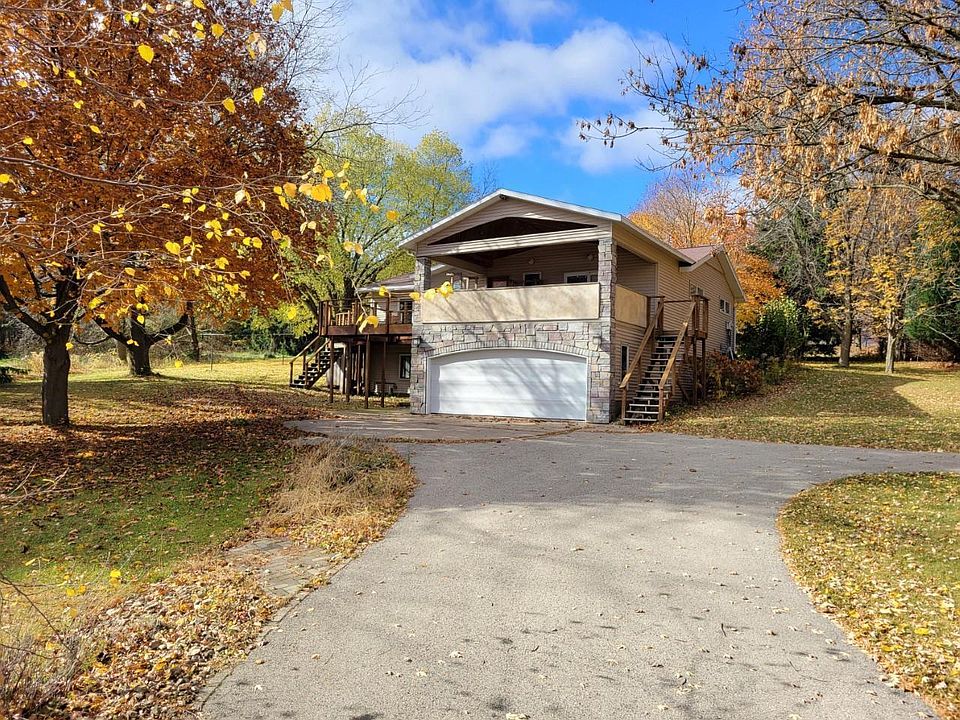 One of a Kind Country Estate. Raised Ranch on almost 4 Country Acres with tons of Storage and Workspace in the 3 additional Outbuildings. Owner/Artist influenced Remodel. Updates include but are Not limited to: Hand Cut Stone Arch, Remodeled Kitchen (Dishwasher, Oven, Fridge, DCS Cooktop), Bathrooms (Marble, Hardwood), Fireplace, Washer, Dryer, Siding, Roof, Well Pump, Japanese paper Closet Doors with Mahogany frames, Tiger Maple Trim, Cherrywood Inlaid doors, MCM George Nelson Design lighting fixtures, etc. Mature orchard including Peach, Pear, and Apple Trees with additional raspberry and blueberry patches. Outbuildings 72 X 36 Outbuilding has Electric, Water, and is Heated and Insulated. Other Outbuildings are 36 X 26, and 24 X 24. Covered Deck, Open Deck, and Patio to Entertain.