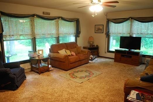 Well Maintained Home on 9.85 Acres! 1625 sq. ft. Ranch. 3 Bedrooms. One and a half Baths. Big Living room has beautiful view of back yard, wood burning fireplace and Brick Hearth. Eat in Kitchen has Breakfast Bar, Dining Area and includes Appliances. First Floor Laundry. Full Basement. Workshop. Attached 2 Car Garage. Detached 2 Car Garage with Overhead Doors on both ends. Beautiful front yard and backyard paradise. Almost ten Acres of Woods! Excellent Deer Hunting.