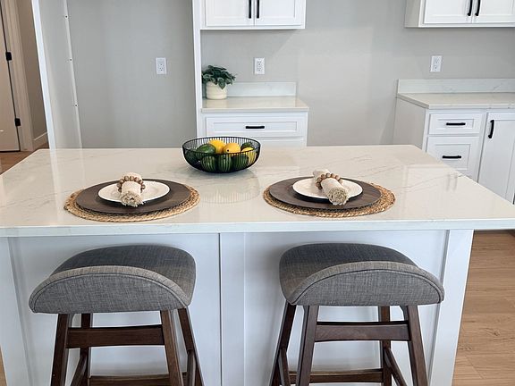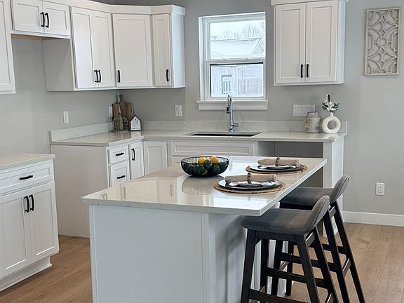 Stunning quartz countertopsOpen concept floor planFloor to ceiling windowsLvp flooringCathedral ceilingSparkling white cabinetsTons of natural light