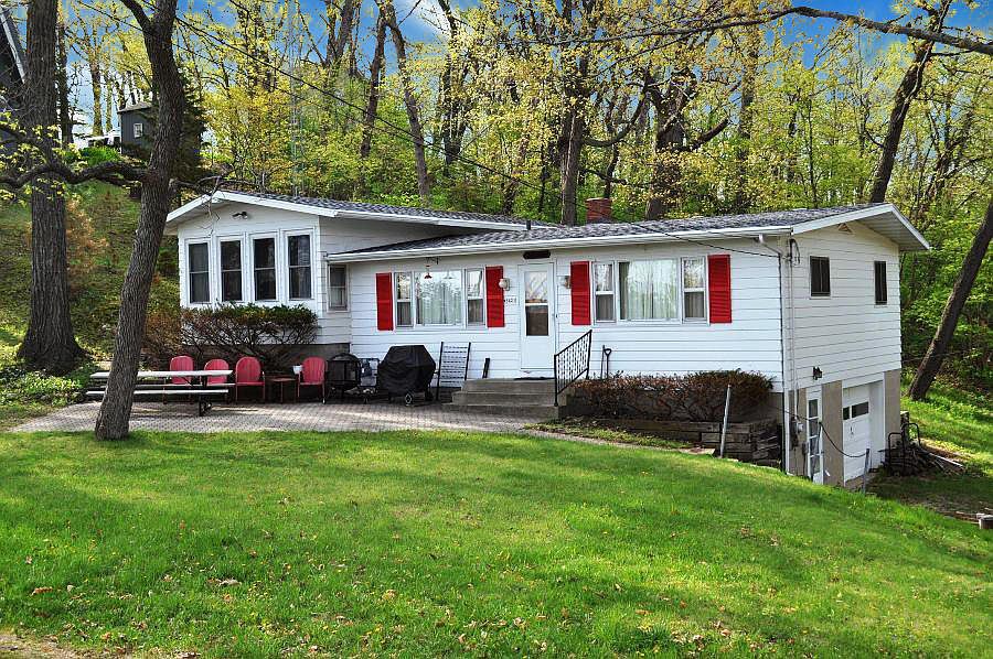 Best swim frontage available for the price on Lauderdale. Spectacular lake views w/50' of crystal clear Middle Lake frontage featuring 4BR, 1.5BA ranch w/knotty pine interior. Open eat-in kitchen to living room. Master bedroom w/half bath. FR w/wood floor & door to front lawn. 1.5 attached garage w/14x21 storage area. Patio off kitchen/living room. Lakeside patio that leads to some of the best swimming on the lake. Ample parking on quiet road.