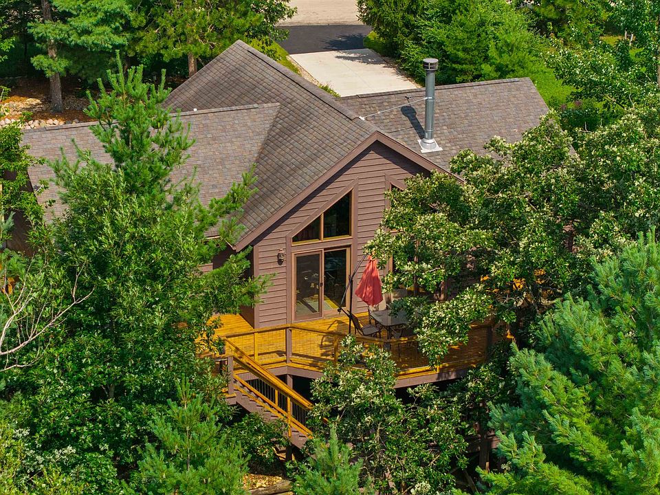 Exceptional waterfront home on full rec. 74 Ac. Round Lk. Beautiful layout including 4 Bed, 3 Bath, open living area w/FP, main flr laundry/mudroom. Very well maintained & updated home featuring exceptional details including remodeled kitchen w/granite topped island & quartz counters; new paint & carpet; Ash hardwd flrs; huge wrap around cedar deck w/8 person hot tub; finished lower walkout w/full bath; & workout rm. Large 3 car garage w/loft for workshop, storage, or game rm. This lake property has 103' of sandy water frontage, a boathouse, beach firepit. Dock, boatlift, & canoe are included! Envision yourself in this quiet country location w/low maintenance roadside prairie garden & perennials & over 100Ac of county recreation land across the road w/hiking/biking/ski & accessible trails.
