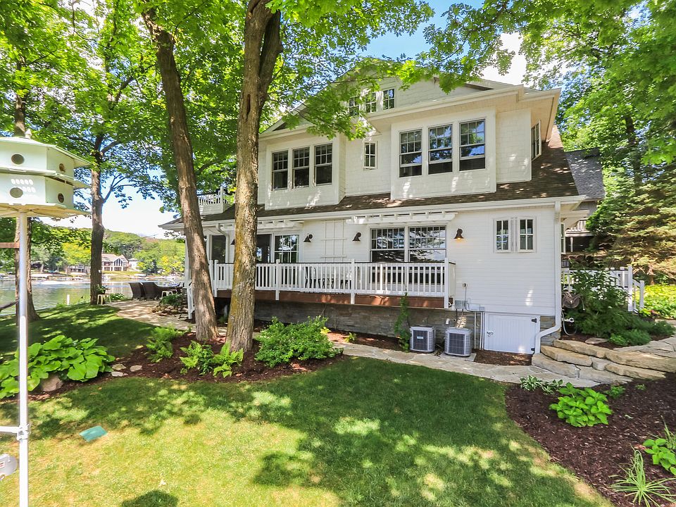 Move-in beautiful Storybook cottage on 251' of level swim frontage w year-round 1BR, 1BA Guest Cottage at waters edge on a spectacular point of land. Enjoy sunsets and panoramic views of the entire length of Middle Lake. Towering trees and lush perennials envelope a luxurious glamping tent and travel trailer for overflow guests giving it that northwoods camp feel. Complete gut remodel/add'n in 2011, numerous built-ins and amazing attention to detail create old world charm. Guest cottage features built-in bunks, FP, kitchen, and full basement. Includes 2 piers, 2 boat lifts, 4 car tandem garage for your toys, boats, and cars, security cameras, 4 mounted TV's, water filtration system for each home, 20KW generator, and much more. Furnishings available additionally for a turn-key sale.