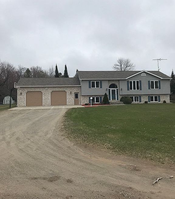 Raised Ranch style home Main level- 2bedrooms, 2 bathrooms, kitchen, dining area, and living area Basement finished- 2 bedrooms, 1 bathroom, living area, and utility room Garage 2 car attached, insulated and dry walled, basement and upstairs access Pool, jet tub, and natural gas hookup for pool Central air, natural gas, good water. 1.5 acres in the country 5 minutes from town