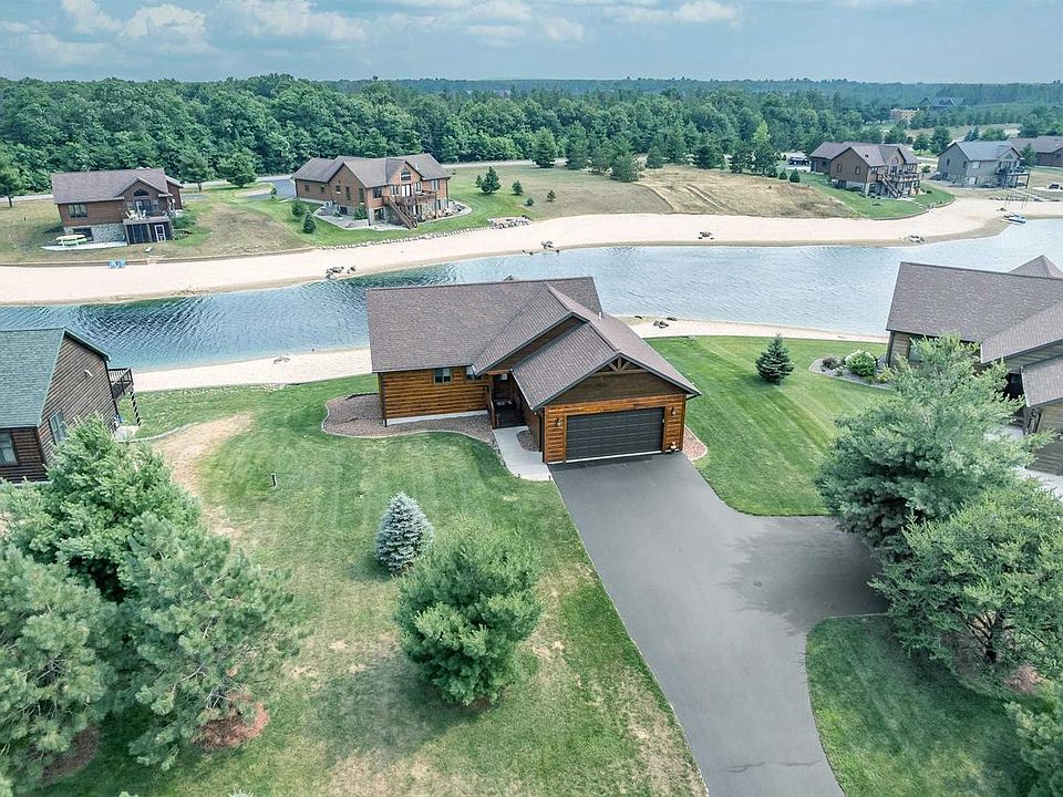 Welcome to your Northwoods Lake Home on Castaway Lake in the Copper Point development! Offered FULLY FURNISHED! You will love the stone gas fireplace and cozy cabin finishings in this meticulously maintained 2,200 sq. ft home. Main floor primary suite with 2 additional bedrooms in the LL. Finished lower level with walk out patio door to your very own sandy beach with 104' frontage where you can swim, fish, kayak, canoe, paddle board Castaway Lake. Access to boat slip on Castle Rock Lake and Clubhouse with indoor pool, workout facility, outdoor tennis court, pickleball courts, kids' playground, and more for year-round fun. ATV/UTV/Snowmobile trails and Buckhorn State Park nearby - enjoy this recreational paradise full time or as a vacation home! Perfect in every season!