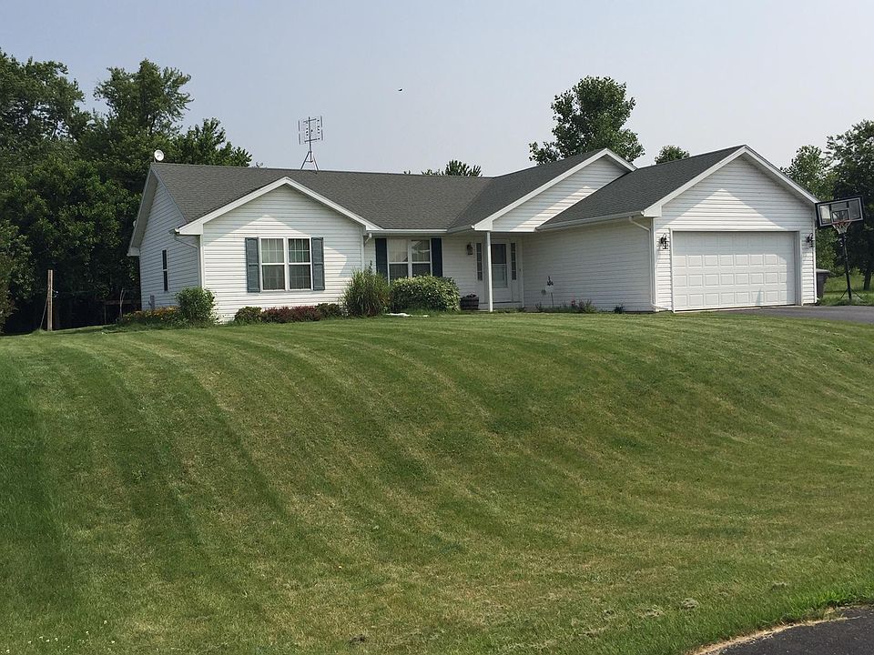 Very Well Maintained 4 bedroom Ranch with open concept living room and kitchen with snack counter and dining area. Cathedral ceiling, main floor laundry, large brick patio, large back yard that has children's wood swing set and garden shed.. Master bedroom suite with 14' long walk-in closet and ceramic tile bath. Full basement with a den/office, family room area, rec room area and 4th bedroom also extra storage area in basement and 2 car attached garage.