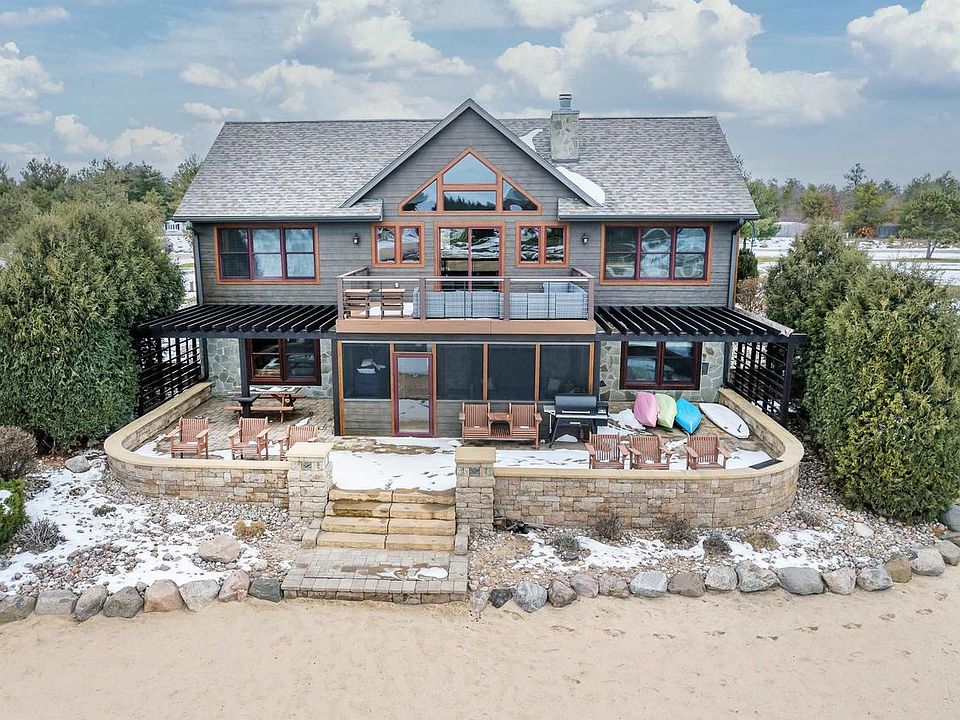 Move-In Ready Lake Home on a DOUBLE lot with over 168' frontage on Castaway Lake and almost an acre of land, being offered FURNISHED. Featuring over 3,000+ sq ft, 5 bedrooms, 3 bathrooms, 3-car finished and heated garage, custom kitchen with stone on island, wood-burning/gas fireplace, upgraded flooring throughout, second kitchen/bar area in lower level, screened-in porch with walkout to incredible landscaping with stone beach wall, pillars, and steps to beach. Recent updates include new roof (2023) new LP siding (2022), composite deck and rails (2022). Clubhouse amenities including indoor pool, workout facility, basketball court, tennis court, pickleball courts, new kids' playground, miles of walking trails. ATV/UTV/Snowmobile trails and public boat launch to Castle Rock Lake nearby.