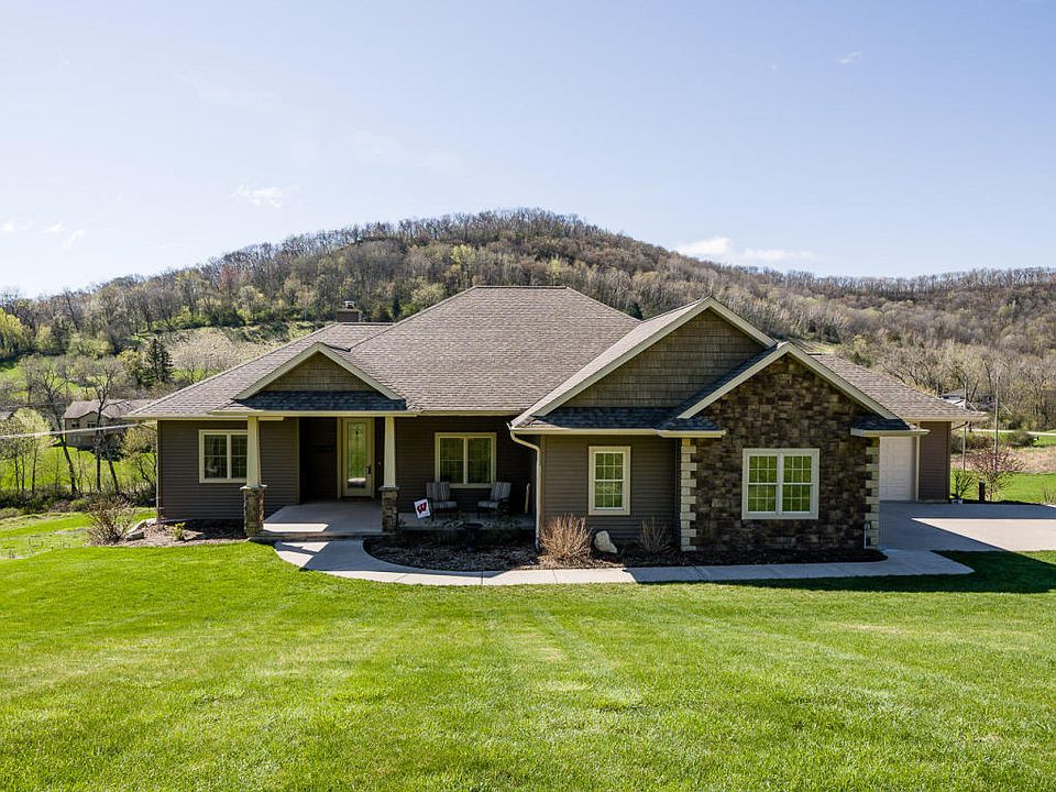 Stunning open layout ranch with expansive yard space, beautiful valley views, quality finishes throughout. This 5 br, 3 bath walk out ranch sits on almost 2.5 acres of all usable yard space & features a split bedroom design, terrific master suite, open great room, superb kitchen & dinette, formal dining, full finished lower complete with a popcorn kitchen. Very large 3 car garage has a bonus 4th stall tuck under garage. Approx. 4200 sq. ft. of finished living space. This newer home is move in ready!