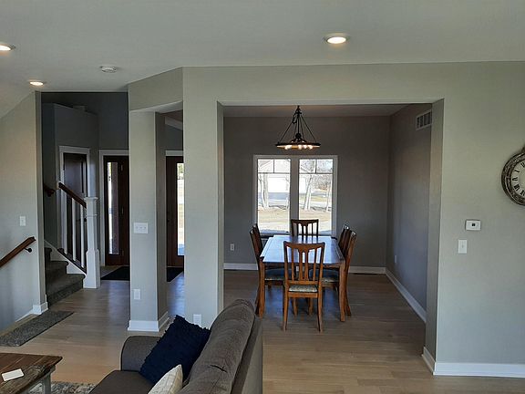 Beautiful new home with a stylish architectural design which includes a covered front porch with columns and a railing and the front of the house is accented with stone. The floor plan is an open concept with a spacious great room with gas fireplace. The kitchen will feature a large pantry and and a large island with will accommodate stools for a quick breakfast. All solid surface counters. 4 bedrooms up with a huge master suite, tub, walk in shower and a huge closet. Plus 2nd floor laundry. Finished basement with a family rm., den or exercise rm. and full bath.