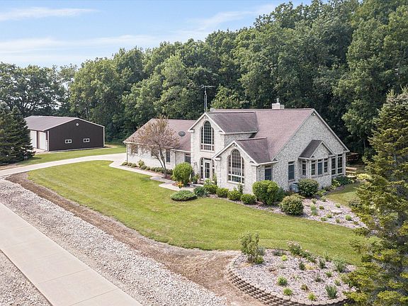 START OFF 2022 IN YOUR NEW HOME! TOUR IT TODAY! You'll know you've discovered a little bit of paradise as you navigate up the nearly 1/2 mile long concrete drive to this custom designed,executive,all brick ranch home that is accented by an amazing 99x40 building/shop. No details were overlooked with this property from the in flr heat,to the nat firplc,17' high cath ceilings, tile bcksplsh,under cab lighting,kit island, whrlpl bath, power skylights/blinds,back up generator, central vac, b/i firepit in deck, stairs from gar to bsmnt, comm dehumidifier, Anderson windows, dual sump pumps,to the SS chimney cap, gutter guards, window wells! The original owners are ready to pass this meticulously maintained property onto the next buyer that desires an exquisite, one of a kind estate!CALL NOW