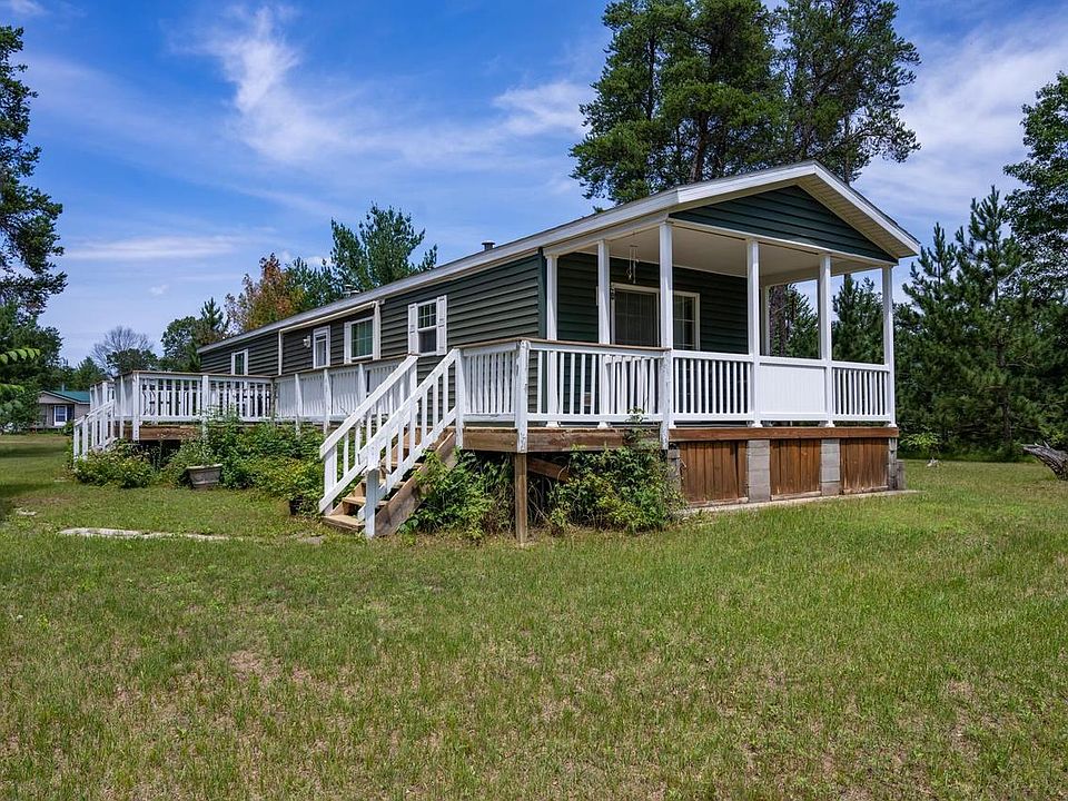 Start living the up north lake life at a very affordable price. This location is less than 5 minutes from the Buckhorn bridge boat landing, sandy beach on Castle Rock Lake & Yellow River access. 2009 16x80 single wide manufactured home features 2 bedrooms, 2 full baths, plenty of closet space & bright interior. Primary suite comes with full bath featuring garden tub, shower & double vanities. Wrap around deck to enjoy morning cup of coffee or starry Wisconsin nights. House comes fully furnished. The property features 30x45 shed with gravel floor (no electric), 16x15 storage shed & 12x16 shed/gazebo with electric concrete floor & wood stove (not hooked up). Wooded 1 acre of land on private road. On ATV route and super close to snowmobile trail. Take advantage of all this area has to offer!