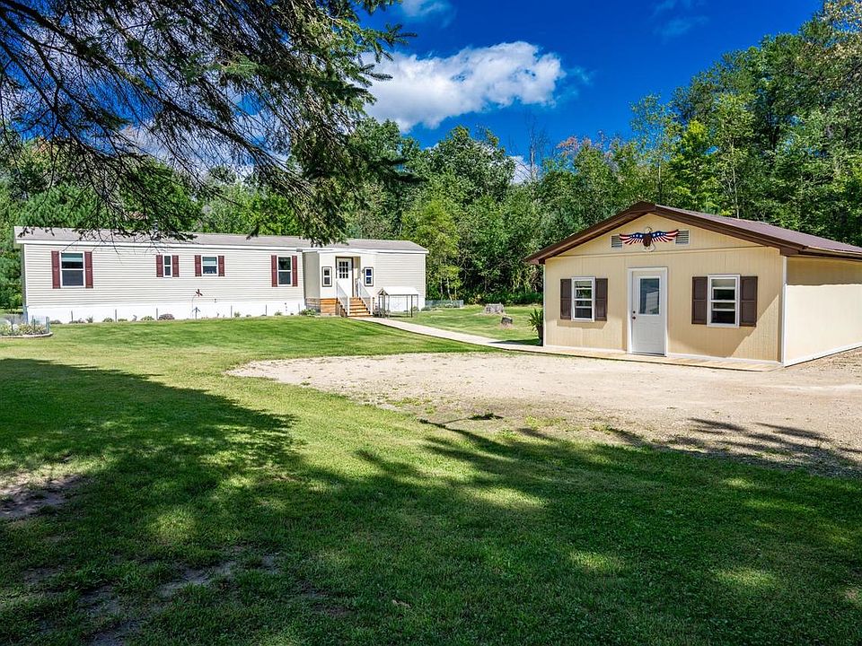 Escape to your own private oasis on 5 acres just minutes from Lake Petenwell! This immaculate property features a newer 2bdrm, 2ba single wide mobile home on a concrete pad with everything in pristine condition. Step outside to relax in the charming backyard gazebo, or take advantage of the impressive outbuildings: Remodeled 1-stall garage fully finished with heat and air, perfect as an additional living or hobby space. 36? x 54? pole shed with a finished workshop, two 12? overhead doors, which provides space for all your toys. Full RV hookup w elec, water & sewer. Set on 5 peaceful acres, this property offers the best of Northwoods recreation?UTV and snowmobile right from your driveway, enjoy hunting, fishing, or boating just minutes away, and soak in the quiet seclusion. Don't miss out!