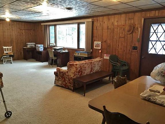 Room for everyone in this 3+ bedroom home. Over 200 feet of sandy frontage and approximately a 1-acre lot give you the privacy you are looking for. Custom cabinets and large pantry, built-in storage, stone fireplace, large lower level rec room and walk out to the lake side. 2-car attached garage and an additional drive-under garage with blacktop drive. With some of your updating, this home could be your own.