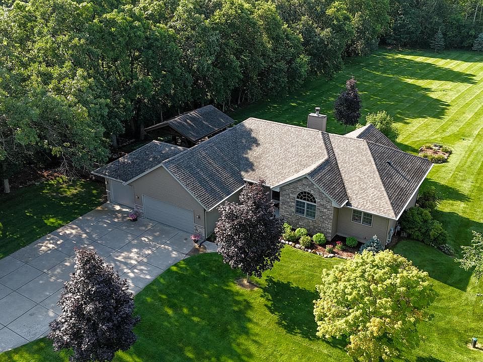 Perfect location! This custom built home is located a quiet subdivision in Koshkonong township. The upstairs features an open concept kitchen and living room, fireplace, three bedrooms, two bathrooms, and a three car garage. The custom log basement is one of a kind, with natural wood throughout, a bathroom with shower, ample storage, bonus room, a cedar cellar, and a custom log bar it is the perfect place to relax or entertain. Updates include a new roof, flooring, and kitchen countertop. Step out to the private backyard sanctuary created by Creative Landscapes Inc. that includes an 800 square foot Pavilion & custom insect curtain, waterfall pond, beautiful landscaping, sprinkler system, shared pond, shared golf hole, and borders the school district of Fort Atkinson's nature area.