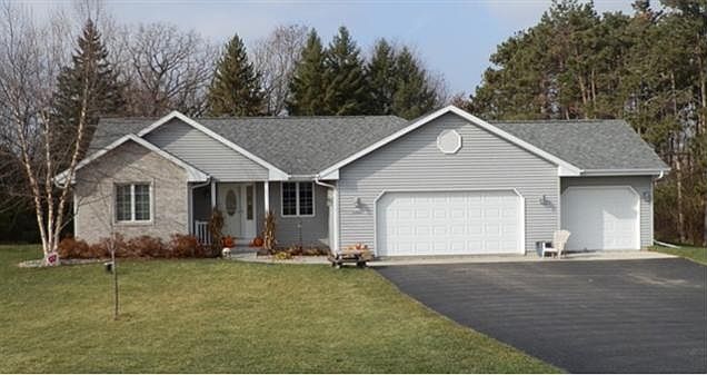 Located in the desirable subdivision of Alpine Meadows. This open concept 3 bedroom, 2 bath ranch features a large kitchen with raised snack bar and pantry. Great room with cathedral ceiling and gas fireplace. Master suite with walk-in closet and private bath, main floor Laundry. The LL is exposed and waiting for someone to finish! Attached 3 car garage. Maintenance free Trex deck. Situated on just under a one acre lot that borders Mush-K0-Se-Day Park with its walking trails, 2 ponds and abundant wildlife.