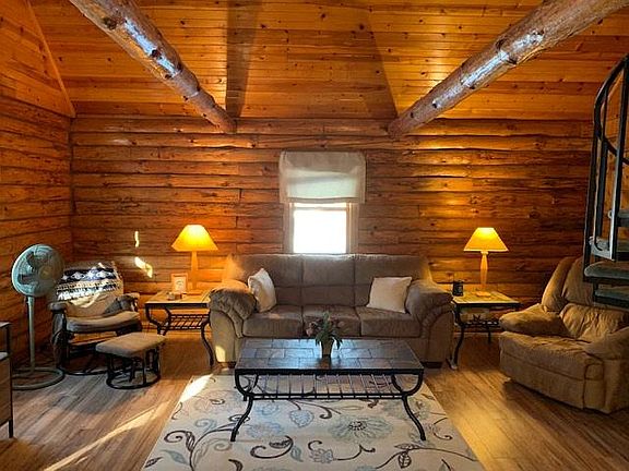 Plug and Play! Completely furnished, well maintained log home with large 2 car garage in a fantastic wooded setting on a double lot just over 1 mile from Castle Rock Lake. Excellent vacation home or full-time residence. The home features stainless steel appliances, Furnace, Central Air and Duct work only 2 years old! Newer well and roof. This home is move in ready, just bring the toys and family. Summer is here and time to enjoy the up north lake life. Boat, truck and lawn tractor are negotiable with home sale. Property sale includes adjacent lot, parcel#290122130. Seller is motivated!