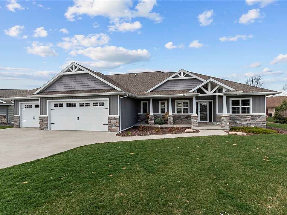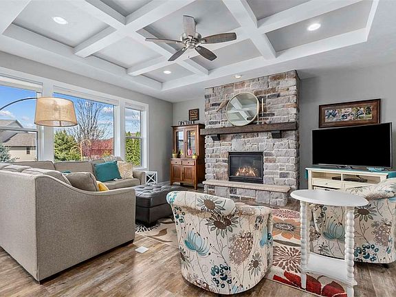 Style, function, space, & character collide in this stunning 5 yr young, split bedroom, former parade home! 4 bedrooms, 3.5 baths, and over 3000 square ft of high end living space will have you smitten. 9ft coffered ceilings, stone lined archways, barndoors, curved corners, tray ceilings, and stone fire places (yes, 2!) are just a few of the design highlights. The sunny kitchen is a show stopper with its expansive island, walk in pantry, & stone counters. Secluded owners suite. Huge mudroom. Pocket office. 4 car garage w/ a 45' deep bay! Large private lot on a quiet street. Kimberly schools!