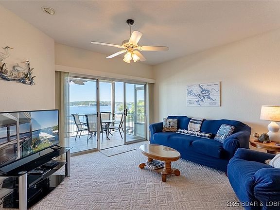 When VIEWS MATTER, this one is at the TOP OF YOUR LIST! Freshly updated 3-bedroom, 2-bath condo featuring furniture and updated décor—just a few easy steps (only 9!) down from the parking lot. Enjoy a bright, inviting floor plan with expansive windows showcasing spectacular main channel views, plus a generous lakeside deck and side patio perfect for grilling and entertaining. The lakeside master suite offers stunning views, a private bath, and a walk-in closet. This full turn-key package comes furnished per inventory list and includes a 12x28 boat slip right in front of the condo. Reserved parking is conveniently close to the front door. Harbour Towne is a highly desirable complex with outstanding amenities including two heated pools with incredible lake views, a clubhouse with kitchenette, fitness room, library, tennis and pickleball courts, playground, shady walking trail, and a lakeside path for easy dock access. Located just minutes from Hwy 54, shopping, dining, and the Bagnell Dam Strip. Great rental history can be provided!