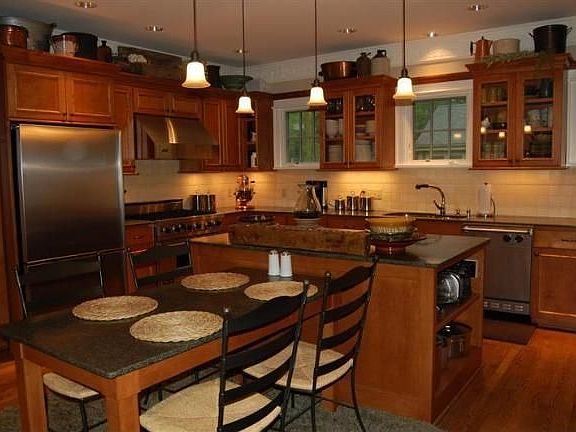 A masterpiece of craftsmanship! The Original barn stone foundation was saved and a sensational new home built over it in 2002! Stunning Gourmet kitchen. First floor bedroom doubles as a den/office/studio. Superior millwork. Gorgeous wood & tile floors. Completely finished lower w/game room & full bath. Total renovation to carriage house with 3 car garage & studio/loft with full kitchen & bath. Enjoy the gorgeous landscape, fenced yard & walking distance into historic downtown