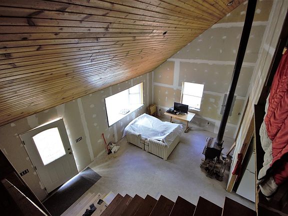 Tucked on 2+/- acres of wooded privacy is where you find this almost finished 2 bedroom, 1 bath home. Maintenance free exterior. Interior is just waiting your finishing touches. Open concept design from kitchen to living area. Convenient loft area for bonus room or addition sleeping space. Enjoy the serenity of the North Woods on your private deck. Minutes from water and trails.