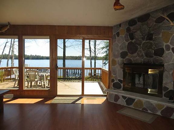 Pike Lake Chain Home With The Best View!! Year round 3BR, 2BA home on 2.7 acres and 200' of level, sand frontage on the popular Pike Chain! Open-concept design offers plenty of natural sunlight and a warm, spacious feel. There's a beautiful field stone wood fireplace in the living room, as well as large patio doors leading to a new cedar deck with composite mainetenance-free decking. There are 3 spacious bedrooms, including a Master Suite with attached full bath. There's a 2nd full bath, large mud room/foyer with laundry and plenty of closet space. The log-sided 3 car garage w/htd workshop will hold all of your toys! Many updates including roof(2011-12),garage roof 2013, stove(14'), bathroom vanity's & faucets & more! Enjoy the snowmobile trail right out the back door on the lake, your very own boat landing & complete privacy. This is the Northwoods dream..