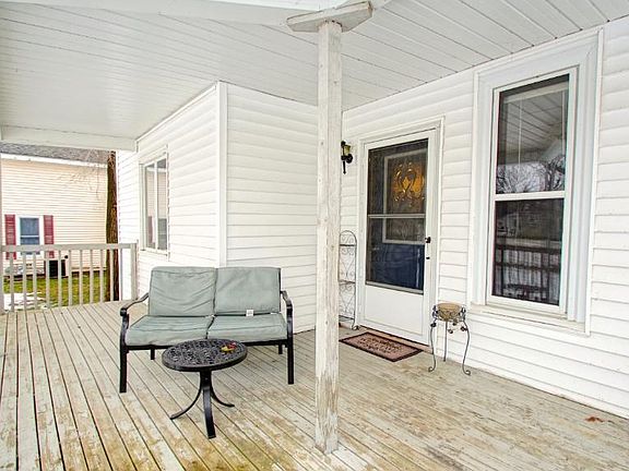 This 4 Bedroom home is located on a level lot and features a deck on the front of the home as well as a 2nd deck with a screened porch on the back of the home. The two car detached garage is insulated and heated. An additional parking spot is located next to the garage. The interior of the home has plenty of natural light. The kitchen has a beautiful tile backsplash and a countertop eating area on a spacious island. There is a bedroom on the main level and the other 3 are on the upper level
