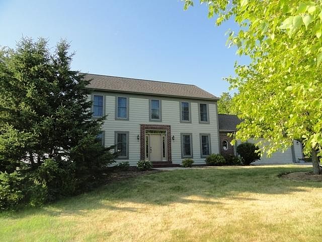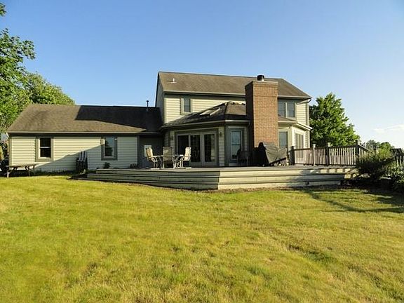 Gorgeous 2 story Colonial located on 5.73 acres! Enjoy the breathtaking views in every direction! Welcome your guests into the open foyer w/beautiful staircase. Stunning open concept living room w/ cathedral ceilings, skylights and cozy NFP. Spacious kitchen boasts custom maple cabinetry, breakfast counter, 2 eating areas & HWF. Patio doors lead to composite deck & relaxing pool. MBR suite has WIC and master bath. Other features: MF laundry, horses allowed, MF den, full basement and much more!