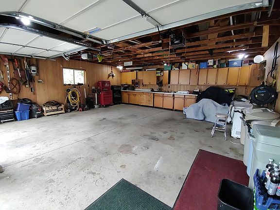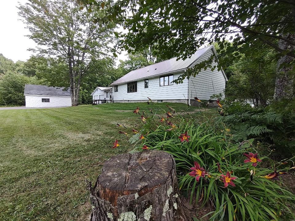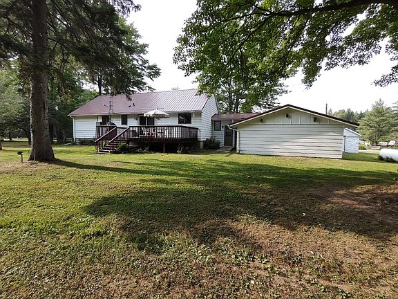 COUNTRY LIVING BUT JUST MINUTES FROM TOWN! 2 bedroom 2 bath home was built in 1970s with full basement placed under in 1986. Wooded and open 5-acre parcel has 2 driveways. Multiple outbuildings;40x35 pole bldg with sand floor, 30x12 RV port with 30amp electric, original stone garage with new overhead door/opener plus additional storage shed in rear. 2-car insulated attached garage w/new doors/openers is attached to the home by year-round mudroom with tile floor & large coat closet. Main floor laundry is located off mudroom/kitchen. New flooring throughout. Kitchen redesign and remodel in 1986. New patio door in 2020 to rear deck. Metal roof on home/garage 2019. Owners suite added 2020-23. Grading to front of home and sanded/sealed basement walls/floors 2021. All appliances and pool table included. Lower level finish was began including a bonus room to finish to your liking. Great recreational location with roads open to ATV/UTV, nearby Spirit Flowage boat landings, snowmobile trails.
