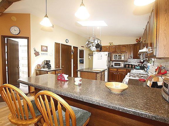 Your year round private retreat: Discover this tranquil park-like setting where wildlife abounds offering endless opportunities on 24+ acres of mixed forest, lowland, dry open meadow, fish pond & hunting camp w/cabin. A hunters paradise. This well maintained 3 bedroom ranch features a bright open concept kitchen/ living area that has a charming appeal, 2 pantry/ storage areas. Main floor laundry. Spacious living room features bow window views, skylights. a wood burning fireplace for those cool evenings & a patio door walkout to a deck. Den/ reading room area and a large bedroom on the main floor. Upstairs has 2 guest bedrooms. Insulated breezeway offers a workshop area. Storage sheds, walking trails. 2nd lot is buildable. Horses allowed!. Stone's throw from 5000 acre Lake Puckaway.