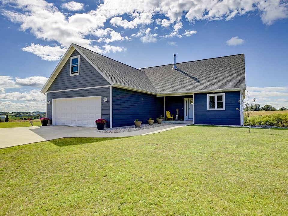 Newer Home on beautiful 5 acre setting in New Glarus (New Glarus Township) Looking for a beautiful country setting outside the village of New Glarus? Four-year new home with southern exposure and lower-level walkout. Expansive country views on a private 5-acre setting. Five bedrooms include a Master Suite on the main level. 3 1/2 baths with 6' master tub and main level laundry. Amish built custom kitchen with solid oak mission doors and trim throughout. Root cellar to hold the harvests from two large gardens. Wood burning stove makes for cozy winter evenings. Two car attached garage and an additional 28'x28' detached garage. Desirable New Glarus school district.