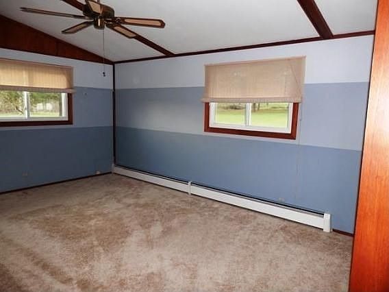 Nice 3 bedroom ranch on 5 acres. Newer roof. Vinyl clad dual pane windows and lots of good carpet. 2 car garage, additional stair to basement from garage. Some finish in lower level.
