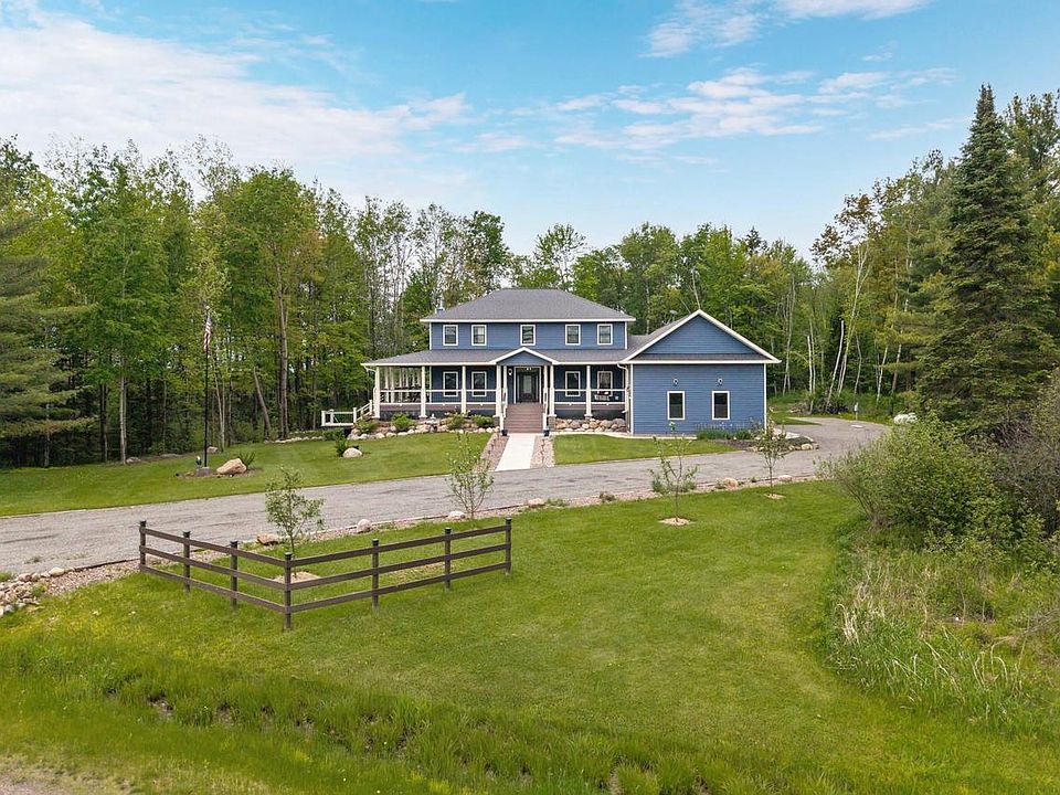 Custom built idyllic retreat on a private 2.2 acre wooded lot! Relax year round on the sensational wrap around (maintenance free) porch w/ wildlife viewing. Enjoy indoor & outdoor living at its finest from multiple levels of the home. Gourmet kitchen features custom soft close cabinetry, quartz countertops, SS appliances & modern lighting. Cozy up in the LR by the WB fireplace or escape to the nearby 4 season room! Main level primary bedroom with spa like bath and 15x15 WIC is exceptional! Work from home in the main level office with its own private entrance. Upper level has two spacious EnSuite bedrooms & a loft! The exposed walkout LL has in-floor heat, a second kitchen, Rec room, workshop & bath. Huge 2 car garage w/ loft. Starlink Internet in place!