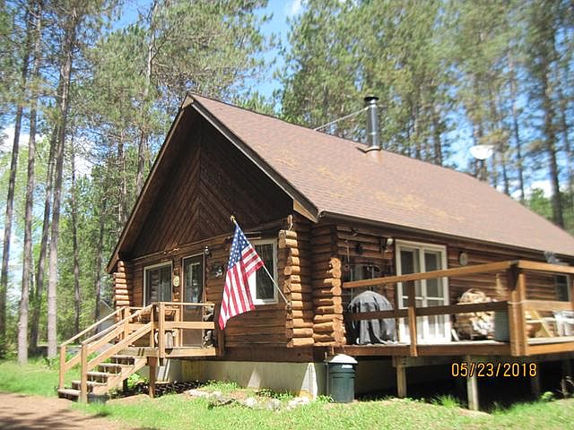TRANQUILITY AND RECREATION PREVAILS. This full log 2 bedroom plus loft home on the South Fork of the Flambeau River is located near Fifield. This home is also within 3 miles of thousands of acres of public lands. The huge front deck is just waiting for warm summer days. The house has a newer shingled roof, new furnace and a new water pressure tank. There is also a poured concrete full basement. All this to go along with a drilled well and conventional septic system. Don't forget the newer 2 plus car garage.
