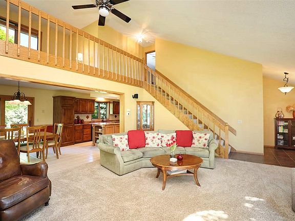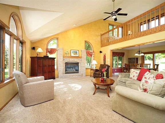 Tucked back on 2 acres welcomes a beautiful 1.5 story home. Step inside to LR w/ vaulted ceilings and gas FP. Dining area overlooks the patio and private tree lined yard. Remodeled kitchen featuring large island, granite and newer appliances. 2 BRs and full BA on the main. Attached 4 car deep garage! Upstairs find a loft area and spacious master featuring remodeled bathroom w/ laundry, copper tub, WI tile shower, heated floors and double vanities. LL welcomes office/flex space and plenty of room for further finishing. Per seller, new furnace, a/c and water heater. Showings start June 10,2021.