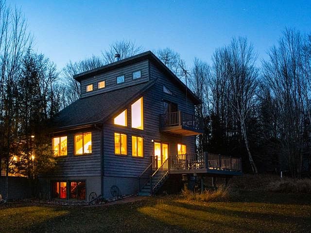 Very unique property on Sailor Creek Flowage. This home was built by a cabinet maker, and features amazing woodworking throughout. There is a great room with cathedral ceilings, hardwood floors,a beautiful fireplace, and a large lakeside deck. Huge windows provide excellent views of the water and the point. The kitchen has a convenient layout with plenty of counter space, an island, and an abundance of oak cabinets. Upstairs you will find the master bedroom suite, with large closets, a balcony,a large bath with jacuzzi tub and a loft area that could be used as office space. The buildings foundation is poured concrete in styrofoam forms. The lower level features a family room with large windows,a bedroom, and stairway to the 2 car attached garage. There is a bonus room that could be used as an extra bedroom. Cross over the boardwalk to the beautiful point and enjoy a picnic and some of the most spectacular views on the lake. An amazing property with many unique features.