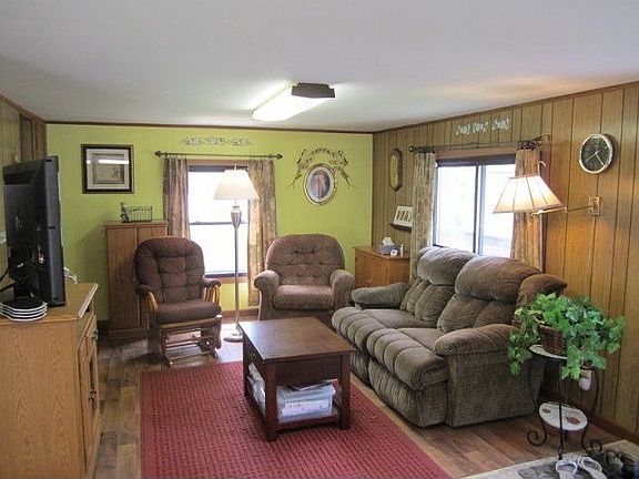 Peaceful and serene! This affordable and move-in ready country home rests upon one acre and is surrounded by mature trees for added privacy. The updated and generous sized kitchen features abundant cabinetry and plenty of natural light. Step outside the family room and relax on your large deck overlooking your beautiful backyard. 30X48 Pole Building features room for your car, toys and even a workshop area!