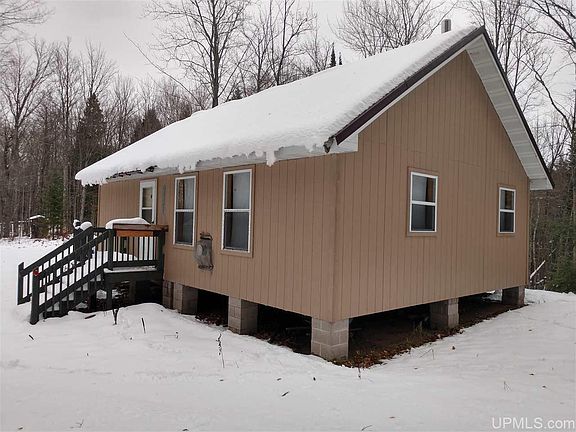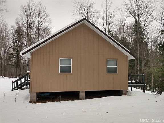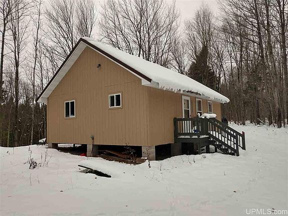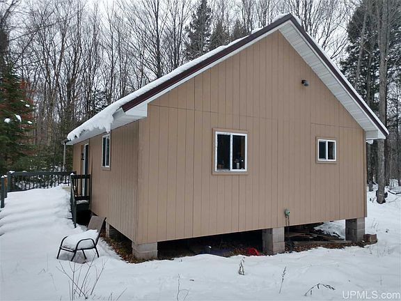 Remote 40 acres with a solid cabin on the Salmon Trout River. The acreage is mostly rolling high ground with a nice mixed forest. There is good access on a solid trail road off the Northwestern Road. The Salmon Trout runs through the SE corner of the parcel with a nice path from the cabin to the river. This is very near the headwaters and the river is small, but crystal clear and holds trout. The cabin is well built and well insulated but not yet finished with wall or floor coverings. It is plumbed for a kitchen and bath and comes complete with appliances and fixtures for each. A septic system is in place. It has high open ceilings with a large woodstove and propane wall furnace. There is a new metal roof as well. This area has always produced mature bucks with little hunting pressure and thousand of acres of public access land. This is also in a snow belt and the extensive logging road systems and nearby groomed trail make for great snowmobiling. This is a quiet setting way off the beaten path, yet has a solid road right to the camp. Finish the interior to your own liking and enjoy!