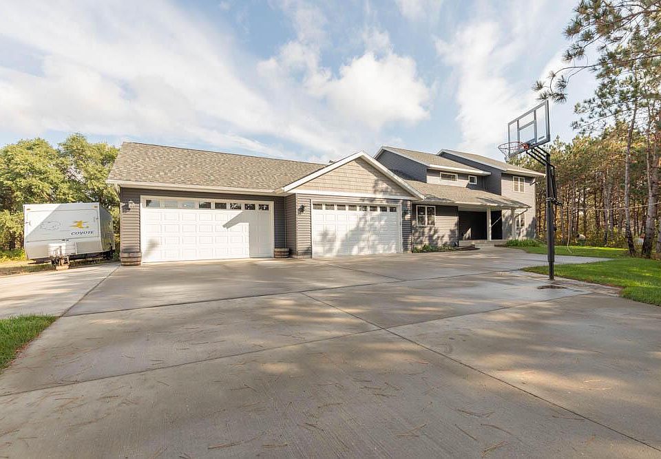 Beautiful custom 5 bed/3 bath home with 4 car garage on wooded 1.6 acre lot north of Holmen that comes with 28x36 pole shed for extra storage. This open concept home with soaring ceilings, Amish built cabinetry, quartz counter tops, walk in pantry, huge laundry/mudroom offers so much space to spread out. The upper level has an exclusive master bedroom suite with walk in closet, and bathroom complete with dual vanities, jetted tub and an amazing walk-in shower. The finished lower level with full size daylight windows has a huge family room, rec room with wet bar, 2 bedrooms, full bathroom and bonus storage room. The exterior features covered front porch, private stamped concrete patio, and large yard perfect for evening campfires. Call today!
