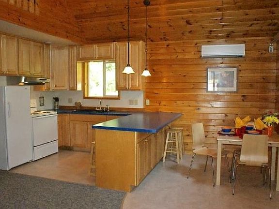 Spotless well-built Chalet overlooking peaceful 45 acre Little Cable Lake, a wilderness lake perfect for canoeing, kayaking and nature watching. Beautiful new patio is a perfect spot to relax, entertain and enjoy the view. Open kitchen, dining and living room with open loft for overflow guest. Rustic finishes, vaulted ceilings, mature pine trees, lakeside recreating area, long views across the lake overlooking the uninhabited island. Great base camp, retirement home, no steps to main level.